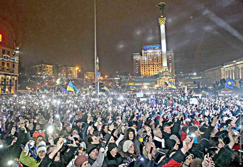 Сколько там людей было на Евромайдане на Новый год? Двести тысяч? Триста? Пятьсот? И вся эта масса пела гимн Украины.
