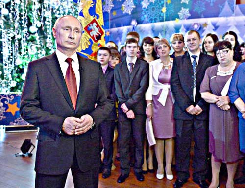 А вот «поздрава из Хабара» – это, как говорится, жесть. Путин там получился какой-то «мерцающий»: то он в толпе стоит и речь говорит, то он один на фоне елочки, а толпа жмется в сторонке. А речь все та же, не прерывается ни на мгновение! И этот последний хор: «Россия!» По отмашке того, кого не видно. Самодеятельность на уровне сельского клуба.