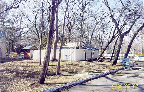 Вернемся, к началу письма — деревья спиливали, а пеньки присыпали песком и землей, стволы деревьев использовали как дрова и складывали их за кафе рядом с административным зданием (наверно попутали уничтожение деревьев с санитарной обрезкой веток АиФ№12). Теперь на месте деревьев вбиты и забетонированы вдоль дорожек невысокие столбики,