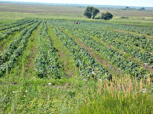 На снимке: Эта земля принадлежит пайщикам бывшего колхоза, а возделывается по устной договоренности с А.П. Лисицей местными овощеводами. Большинство же полей просто «гуляет» под сорняками…