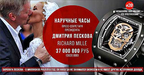 Но больше всего внимание привлекли часы Пескова. Они тут же были опознаны и выяснена их цена – такая, про которую уже не скажешь «кому какое дело». Да еще сама свадьба. Альфред Кох спрашивает: «Это взятка или нет? И если нет, то откуда у Пескова деньги?»