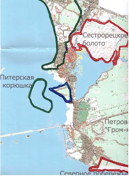 Новая искусственная территория занимает достаточно уникальное место среди особо охраняемых природных территорий города. Это и «Курортная зона СПб», и «Сестрорецкое болото», и «Питерская корюшка» и т.п. На многие из них она буквально наступает. Принимаются решения о сокращении их площади. А правильно ли это? Уж, если что-то решено сохранить, почему, во имя чего мы должны этим жертвовать?