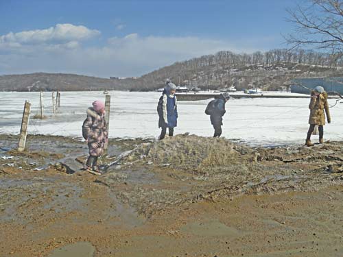 «У нас одна семья живет возле университета. Уже неделю не могут привести ребенка в садик», – говорит работница одного из детсадов острова Русский. Люди, обитающие здесь, вынуждены вставать в пять утра, чтобы добраться до работы. Дети ходят в школу пешком по дорогам, покрытым «озерами», естественно, их то и дело окатывает грязью проезжающий транспорт, потому что автобусы почти не ходят.