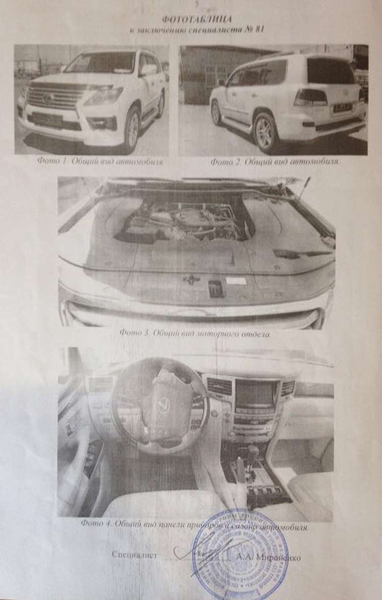 В обращении также указано, что автомобиль «лексус», используемый Петлеванным, имеет следы изменения идентификационной маркировки кузова, рамы и двигателя внутреннего сгорания.