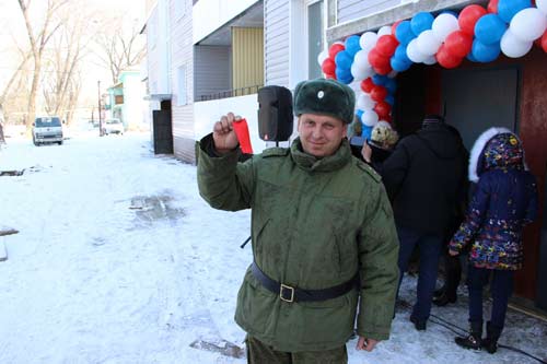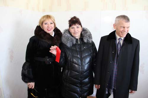 Слева направо: глава г. Спасска Татьяна Труднева, счастливый новосел, многодетная мать Елена Скворцова, и.о. главы Администрации города Вадим Мироненко