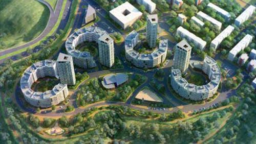 «В состав комплекса войдут четыре кластера, каждый из которых будет образован 25-этажной «башней» с прилегающими полукольцом секциями высотой 8-12 этажей. Суммарная площадь жилых, административных и офисных помещений каждого кластера превысит 120 тысяч кв. метров.