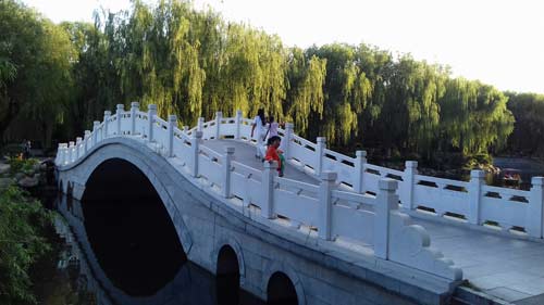 После медиасаммита у нас наконец-то появилось свободное время. Большая часть группы отправилась на долгожданный шопинг, а четверо (мы с Татьяной Демичевой, переводчица Лида и Юля Грушина – зачинщица этой прогулки) отправились в городской парк. Парк очень большой, полно аттракционов и для детей, и для взрослых, много аллей для прогулок. Сначала сели на огромное колесо обозрения и увидели город сверху (снимок внизу). Панорама нас так захватила, что 20 минут на колесе прошли совсем незаметно. Потом гуляли по парку, обозревая зеленые тенистые аллеи, необычайно красивые мосты, водоемы, лестницы. И вдруг чистый звук саксофона на фоне всего этого великолепия. Играющий был явно не виртуоз, но настолько созвучен природе и настроению, что приводил в восторг своей игрой.