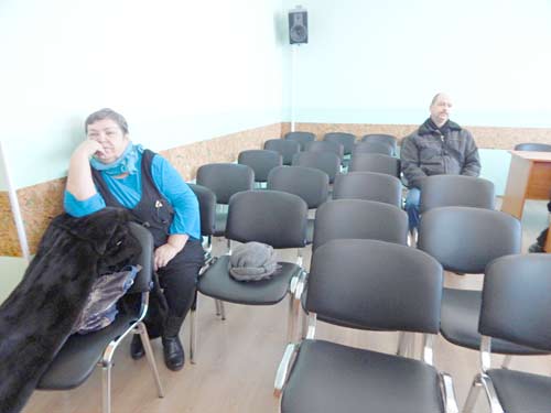 А вдали, среди пустующих кресел, виден активный, сидящий в гордом одиночестве заместитель секретаря местного отделения КПРФ Сергей Кузьмин. В правом ряду на переднем плане - это заместитель мэра администрации Дальнереченского городского округа улыбающаяся Ирина Геннадьевна Дзюба. Она, посидев немного средь практически пустых кресел, «во исполнение приказа», быстро удалилась.
