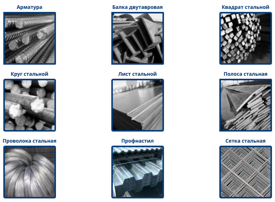 - Различные стальные изделия: проволока, сетки, круги, квадраты, листы, полосы, трубы.