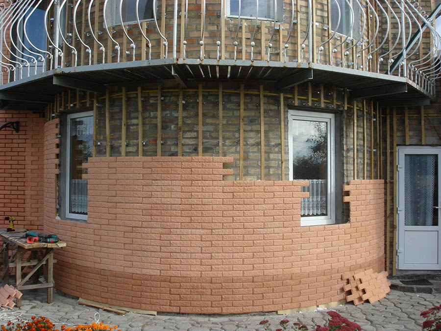 2. Облицовка плитами. Главными преимуществами этого вида штукатурки выступает неприхотливость, простота монтажных работ и при этом высокая прочность материала.