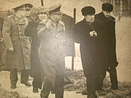 Чуть сбоку генерал Толубко на ходу что-то докладывал Брежневу. Следом за Толубко шел небольшого роста 73-летний первый секретарь новосибирского обкома партии Ф. Горячев; после исторической поездки Брежнева он был сразу отправлен на пенсию (19 лет командовал областью). За Горячевым, в парадной шинели, молча шел Д. Устинов.