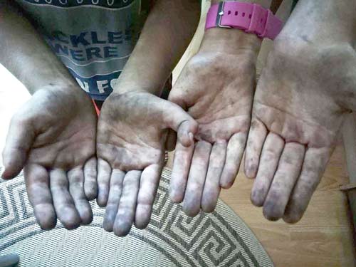 Перевалку угля открытым способом необходимо немедленно выводить за пределы города. А пока этого не произошло, и барыши раскладывают по карманам, детские руки в черной угольной пыли (верхний снимок) пусть будут укором почерневшей от пыли совести.