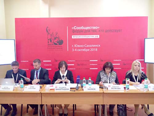 Под эгидой Общественной палаты Российской федерации 3-4 октября в Южно-Сахалинске состоялся форум «Сообщество», в котором приняли участие делегации со всего Дальнего Востока. С приветственным словом к участникам обратился секретарь Общественной палаты Российской Федерации Валерий Фадеев, который сказал: