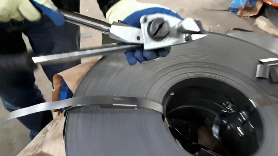 Упаковка стальной лентой при помощи человеческих рук востребована в случаях скрепления объектов округлых форм или стопок очень больших размеров.