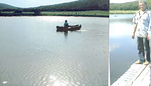Силакова далее пишет, что фактов возведения на окраине Новодевицы водных обьектов (озера) не установлено. Хотя здесь оно заново показано. Видны немалые размеры озера с плавающим на лодке Тычиной; он же изображен и на помосте.