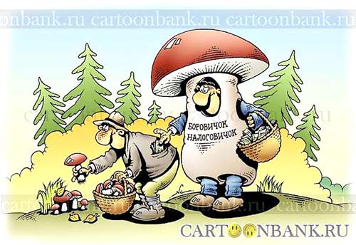 Представляем себе, как некая бабушка ещё затемно потихоньку крадётся по лесу, чтобы добавить в свой нищенский пенсионный рацион деликатес в виде грибов. И тут из кустов, прямо из болота поднимаются доблестные сотрудники МинСельХоза: «А ты, бабка, налог за грибы заплатила?!»