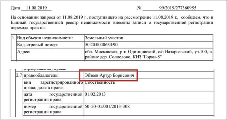 Вот выписка на участок. Покупатель Артур Борисович Эбзеев, которому через месяц исполнится 8.