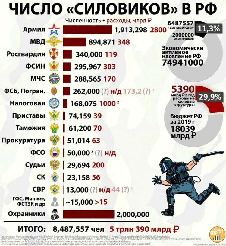 (Самих силовиков + охранники - 11% населения.) Получается, что даже не все члены семей силовиков им доверяют?! Или силовики сами себе не доверяют?!