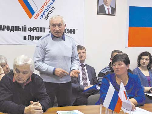 На снимке: бывший директор Новосельского совхоза-миллионера Владимир Дымочко и Людмила Винтова на заседании ОНФ.