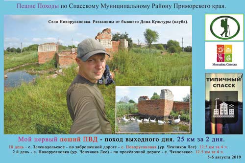 – Всё началось 5 января 2018 года во время Новогодних каникул, – вспоминает мой собеседник. – На тот момент я был волонтёром общественного движения «Молодёжь Спасска» и руководил общественным движением «Спасск Велотур Плюс», занимающимся популяризацией велосипедного туризма не только в Спасске, но и в других районах края. Например, в рамках этого проекта прошёл велотур дружбы «В гости к соседям». Мы посетили все населённые пункты Черниговского, Яковлевского, Анучинского и Кировского районов, которые окружают наш, Спасский.