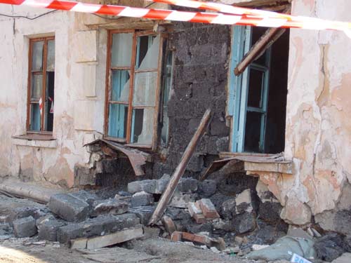– Когда рухнула стена, - рассказала женщина, - началось страшное мародерство: разбивались ванны, снимались полы, выставлялись окна. Дом сотрясался от ударов. Мы пытались воспрепятствовать этому, стыдили: «Дом и так еле дышит, а вы его еще больше рушите!». Ноль эмоций! Пришлось вызывать полицию, писать заявления на самого рьяного мародёра. Он говорит: «Я своё снимаю!», хотя жил здесь без прописки.