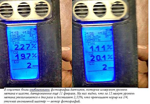 (В соцсетях были опубликованы фотографии датчиков, которые измеряют уровень метана в шахте).