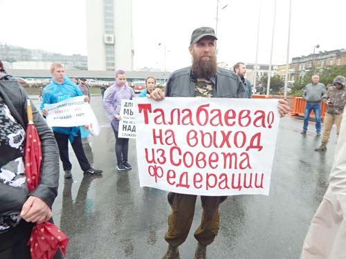 участников митинга «Против экоцида Приморья» к губернатору Приморского края и депутатам Законодательного Собрания Приморского края за отзыв из членов Совета Федерации Федерального Собрания Российской Федерации Людмилы Заумовны Талабаевой, инициации проведения в отношении неё проверки Следственным Комитетом России