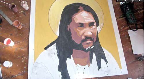 Константин Еременко расстроен арестом шамана: он планировал пройти с ним часть пути до Москвы. В интервью Радио Свобода художник рассказывает, почему решил изобразить Габышева в образе святого и не боится ли, что его новая работа оскорбит чьи-нибудь чувства.
