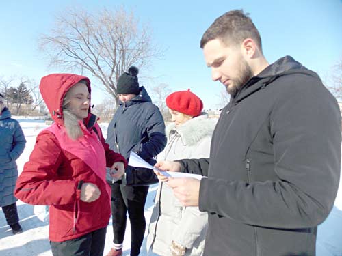 Пришлось людям собраться на улице – и это в февральский мороз!