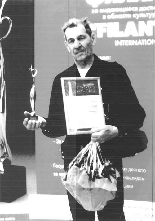 Но история с Владимиром Букиным, писателем, лауреатом международной премии «Филантроп» (на снимке из личного архива Букина вы видите момент его награждения этой премией) и его подругой Тамарой Васильевной Гавриловой – блокадницей Ленинграда, потерявшей всех родных и близких в той самой войне, 75-летие Победы в которой так горделиво нынче отмечает страна, меня поразила в самое сердце. А тут ещё этот фильм (названия не знаю, смотрю урывками в перерывах между работой) о немецком мальчике, сыне начальника фашистского концлагеря для евреев. Мальчик поверил отцу, что там заботятся о людях, и пошел внутрь к другу, надев на себя арестантскую робу. А там их завели в камеру и пустили газ. Все погибли.