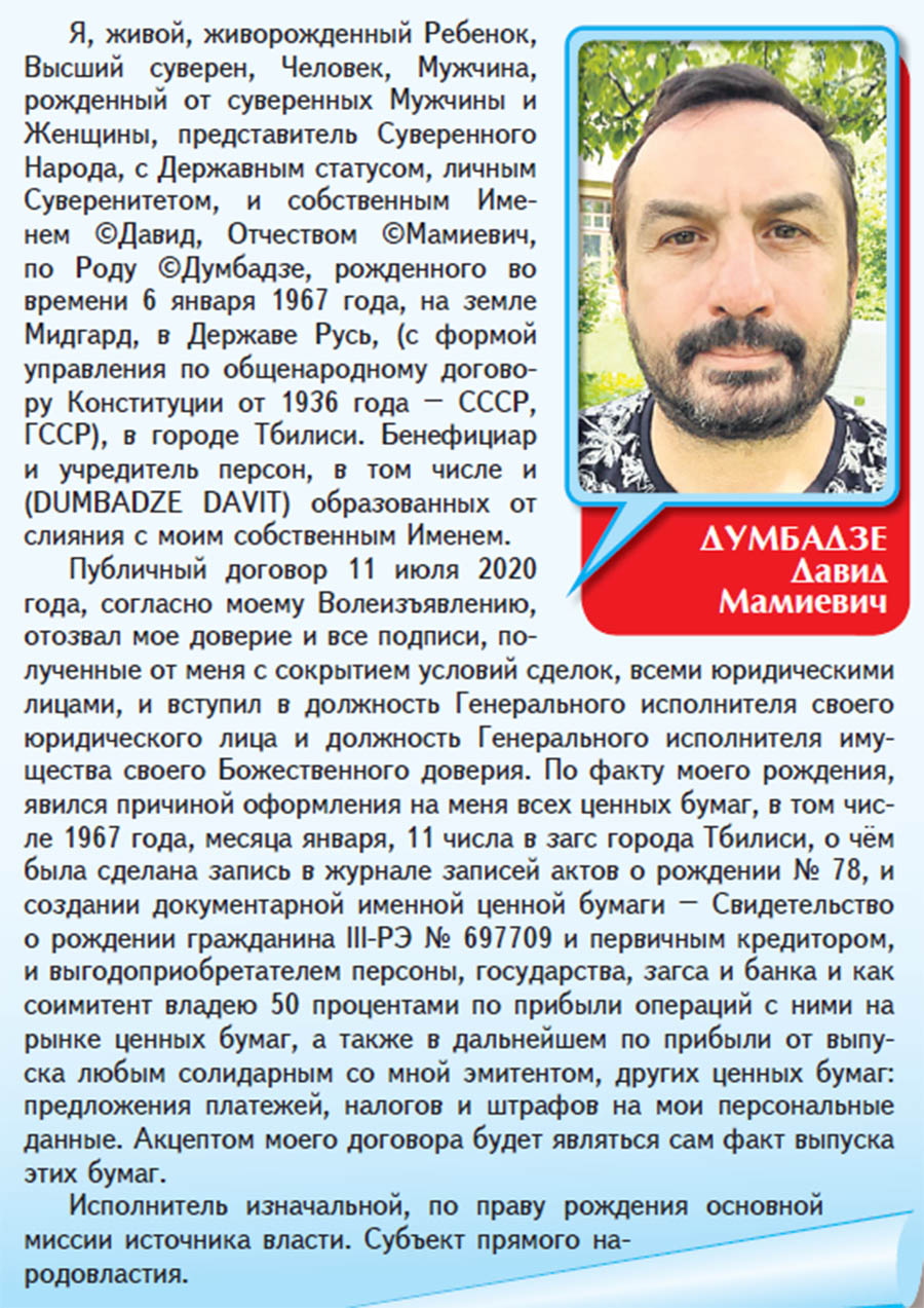 Мы – Живая Душа, Божественный безсмертный Дух, Истинный Человек, ЖенЧина, собственное Имя©тм: Ирина – Главный распорядитель и Генеральный исполнитель имущества своего ЮРИДИЧЕСКОГО ЛИЦА