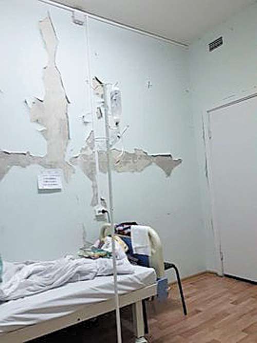 Пациенты лежат в холодных и сырых палатах со стенами как в тюрьмах. Война? Нет. Это Путинская внутренняя политика и его умение управлять-разрушать-воровать. Горько и больно за страну.