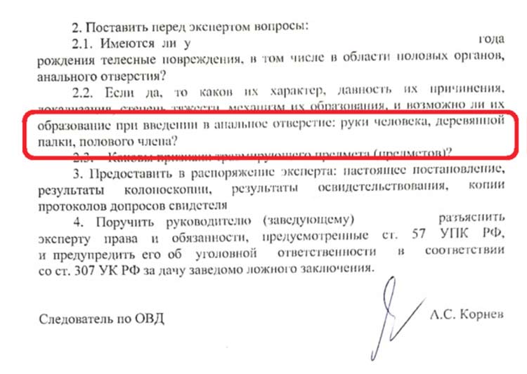 — Евгений Юрченко и трое заключённых признаны потерпевшими по уголовному делу о превышении полномочий (ст. 286 УК РФ), истязаниях (ст. 117 УК РФ) и насильственных действиях сексуального характера (ст. 132 УК РФ). — Следователем вынесены постановления о назначении судебно-медицинской экспертизы по вопросу наличия и природы возникновения телесных повреждений у двадцати семи заключённых (цитаты именно из этих постановлений я привёл выше).
