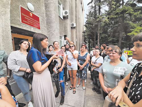На следующий день к зданию администрации УГО по улице Ленина, дом 101, пришло несколько десятков родителей, некоторые из них были с детьми. Ожидалась встреча с главой УГО Евгением Коржом, на которой также присутствовал прокурор Уссурийска Тимур Кушнарев. В просторный зал заседаний, ссылаясь на требования Роспотребнадзора, впустили только 15 человек. И уже здесь решение вопроса было найдено.
