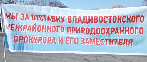 протест против размещения на юге Приморского края России производства метанола и выступление за отставку должностных лиц, создавших препятствие проведению общественной экологической экспертизы экспертной комиссией Дальневосточной межрегиональной экологической общественной организации «ЗЕЛЁНЫЙ КРЕСТ».