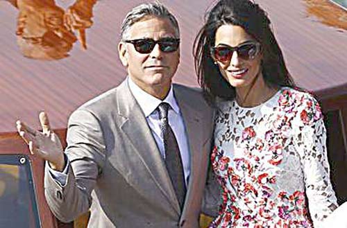 По данным «Us Weekly», жених и невеста лично написали клятвы верности и произнесли их около арки из белых роз в роскошном венецианском отеле «Aman Canal Grande», куда 36-летнюю Амаль подвел ее отец. В это время звучала традиционная мелодия в исполнении струнного оркестра.