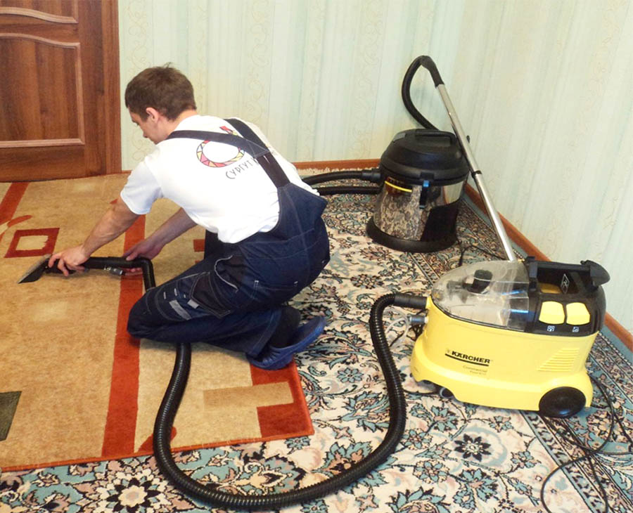 Многие клининговые компании предлагают услугу химчистки ковров на дому, в процессе которой ворс обрабатывается в несколько этапов: