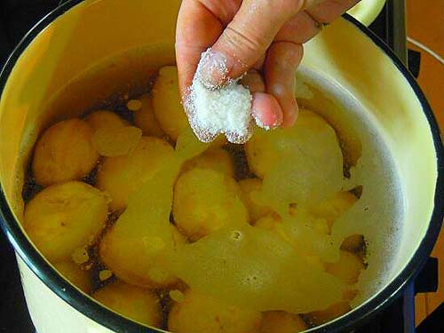 * Чтобы картофель «в мундире» не разварился, варите его в соленой воде. И чем больше положите соли, тем лучше!