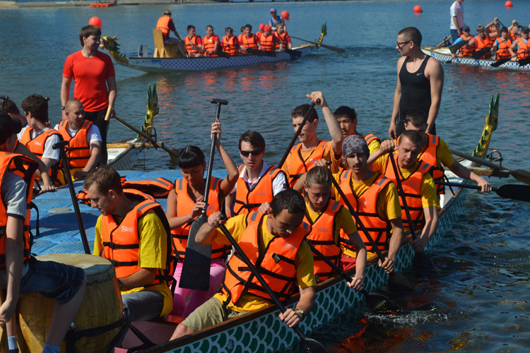 Начался праздник соревнований смешанных команд молодежных общественных объединений, власти, бизнеса и СМИ по гребле на лодках класса ”Дракон”. В данном мероприятии приняли участие представители КПРФ среди которых был замечен Депутат ЗАКСА Артем Самсонов и его помощник Александр Самсонов, студенты Владивостокского Государственного Университета Экономики и Сервиса и другие многочисленные городские организации. По результатам заездов победителями стали: команда "Спектр", ее время прохождения 200-метровой дистанции 57 сек. Второе место досталось команде "Магистры", и третье – "Летучий дракон".