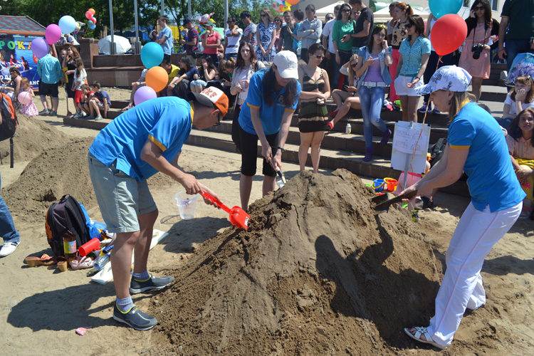 Также на набережной прошли соревнования по строительству города из песка. Принять участие мог любой желающий. Взрослые и дети с увлечением строили различные замки, башни и сооружения.