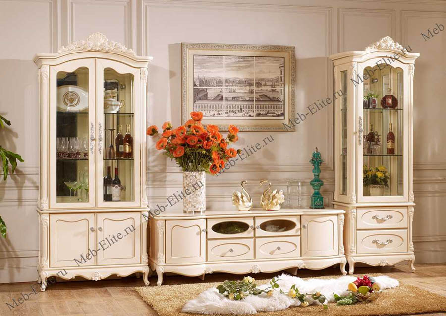 Учитывая универсальность гостиной комнаты, каждый устанавливает здесь ту мебель, которую он считает нужной, поэтому не стоит себя в чем-либо ограничивать. Единственное, что должно быть в каждой гостиной, так это просторная и роскошная витрина, где можно расположить телевизор, музыкальный центр или другую электронику, а также спрятать много домашних вещей. Кроме того, гостиная является некой визитной карточкой хозяина дома, поэтому тут всегда размещают самые ценный и редкие вещи, а где, как не за роскошными резными дверцами расположить бабушкин хрустальный сервис или редкие книги, которые достались вам от деда. Так что витрина – это обязательный атрибут каждой гостиной комнаты.