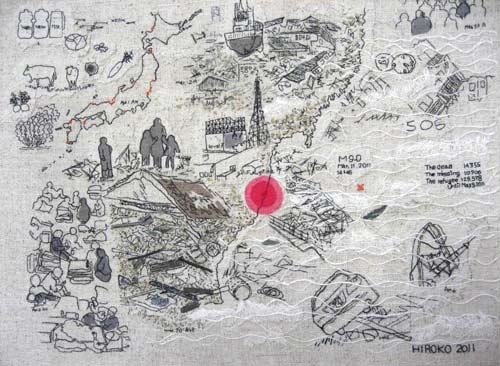– Каждый день по телевизору и в газетах сообщали информацию о катастрофе, и я не могла оставаться равнодушной к этому, – говорит Хироку Амано. – Моё сердце ещё больше сжималось, когда новости передавали только сухие факты и сразу же «забывались» в эфире программ. Я решила, что люди должны помнить об этом. Собрав фотографии с места трагедии, я попыталась с помощью вышивки выразить всю боль и печаль этих людей. Когда я вышивала образ человека, мысленно переживала за него. Когда изображала девочку, которая во время цунами потеряла маму, я представляла, как я сижу радом с ней и утешаю ее. За работой я сама постепенно успокаивалась».