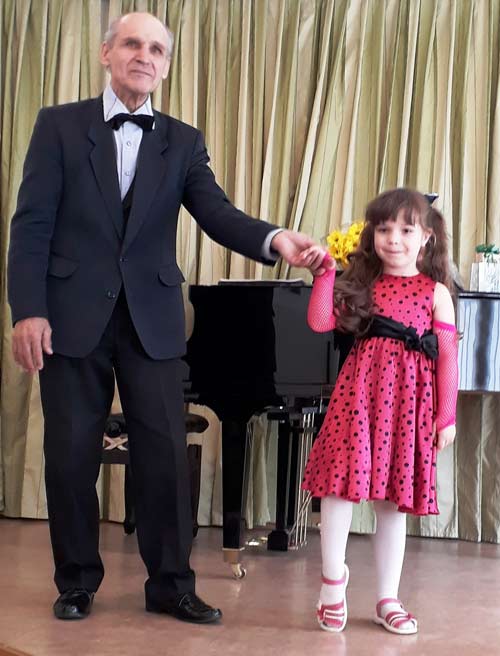 Работать иначе он, видимо, просто не умеет. Яркое свидетельство тому – выступление Вероники Болотниковой. Девочке пять лет, на концерт она пришла вместе с Людмилой Ивачёвой, солисткой «Орфея» и верной соратницей Леонида Букина. Они даже выступали вместе, что неудивительно: Людмила Ивановна – бабушка юного дарования, которому сам маэстро прочит блестящее музыкальное будущее. Девочка обладает абсолютным слухом, приятным голосом и на сцене держится удивительно естественно.