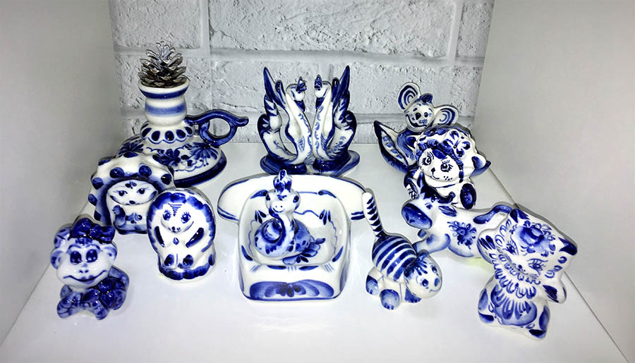 Животные, птицы, сказочные персонажи в виде штофов, статуэток, шкатулок, а также часы, лампы и картины в фольклорном жанре — всем этим и многим другим современные мастера гжельской росписи удивляют сегодняшних потребителей. Официальные поставщики товаров гжельских мастеров предлагают широкий ассортимент сувениров, которые поразят изяществом мазков рисунков и орнаментов. Роспись мастера производят по пористой поверхности изделий и завершают работу заливкой глухим кобальтом. У одного и того же автора никогда не бывает одинаковых узоров, поэтому каждый сувенир станет поистине уникальным подарком.