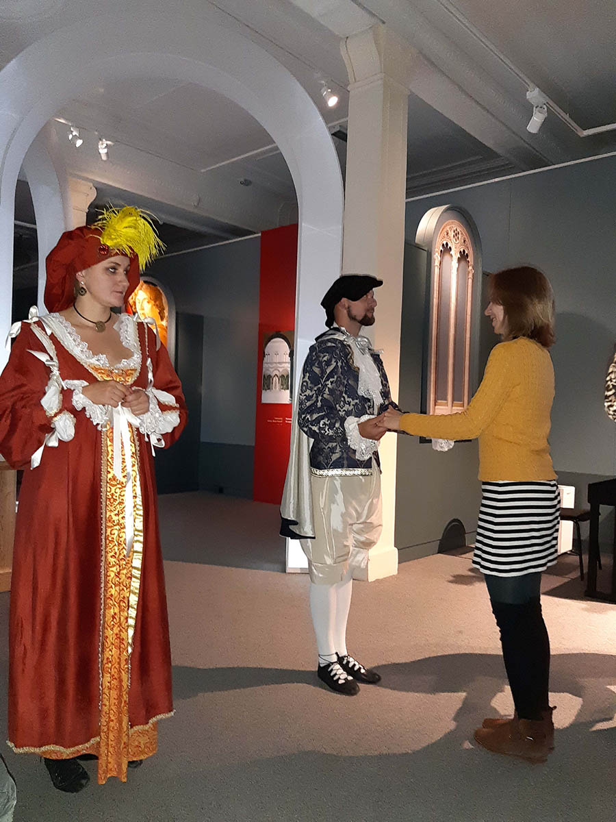 В Парадном зале, где завершают работу выставки «Боттичелли. «Мастер универсального искусства» и «Мадонны Дальнего Востока», вниманию зрителей была представлена танцевально-музыкальная программа. Вместе с участниками студии старинного и народного танца «Наследие» желающие попробовали станцевать танцы эпохи Возрождения, узнали об истории итальянского костюма и танцах. Чтобы сделать мероприятие более ярким, картинная галерея обещала бесплатный вход посетителям в костюмах итальянского Возрождения, но большой активности со стороны посетителей не наблюдалось…