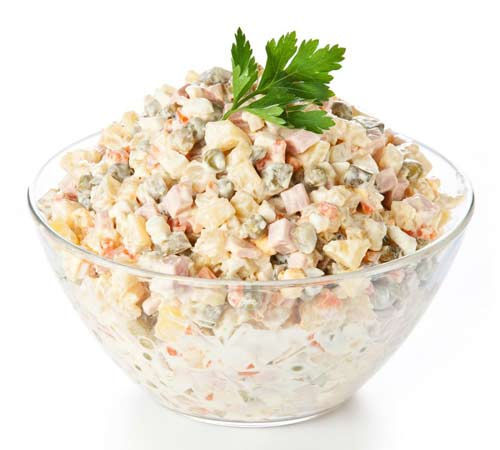 Преобразовать можно даже заправку: вместо майонеза взять обезжиренный йогурт с лимонным соком. Правда, это будет уже не совсем привычный оливье, зато без вреда для фигуры.