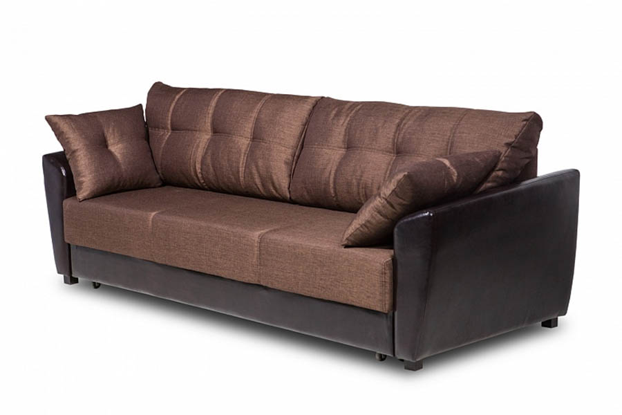 Порту — компактные диваны длиной всего два метра. Они подходят для установки в любом помещении квартиры, дома. В составе каждой модели: удобные подлокотники из искусственной кожи, большие мягкие подушки на спинке и маленькие декоративные подушечки. Применение механизма трансформации еврокнижка позволило облегчить процесс раскладывания и складывания мебели. При этом под сидением предусмотрено свободное место для хранения домашних вещей. Вы можете заказать диван Порту в бюджетном наполнении (ППУ), с использованием практичной, износостойкой, приятной к телу ткани.