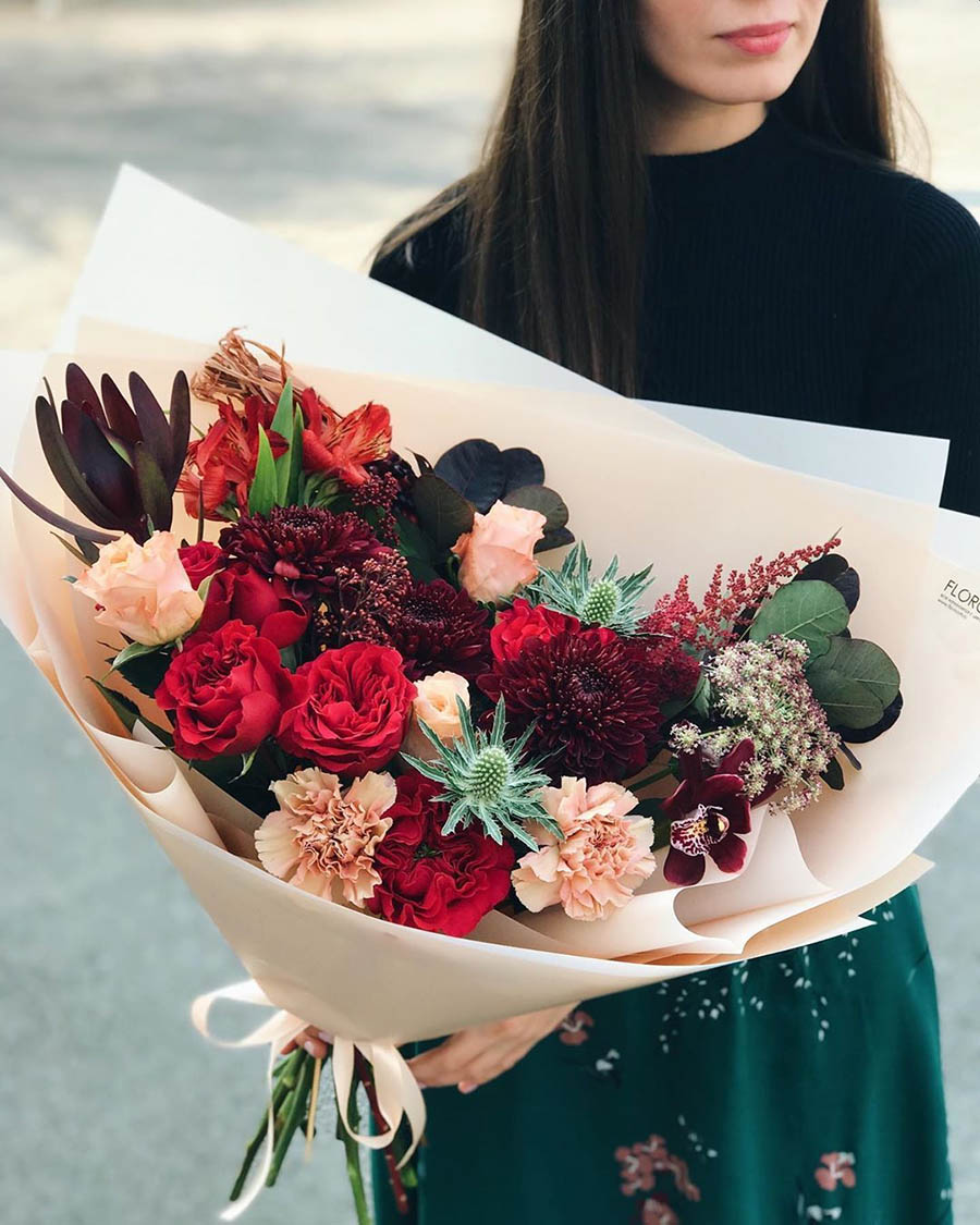 У нас можно заказать доставку букетов во Владивостоке из самых разных цветов. В каталоге представлены композиции из разных видов роз, нежных эустом, красочных гербер, гортензий. Ассортимент нашего каталога очень обширный. На сайте представлены как популярные сезонные цветы, так и редкие экзотические растения. Букет всегда собирается из самых свежих цветов. Мы даем гарантию, что наши композиции не испортятся на следующий день. Если в каталоге нет подходящего варианта, флористы соберут уникальный букет по индивидуальному заказу.