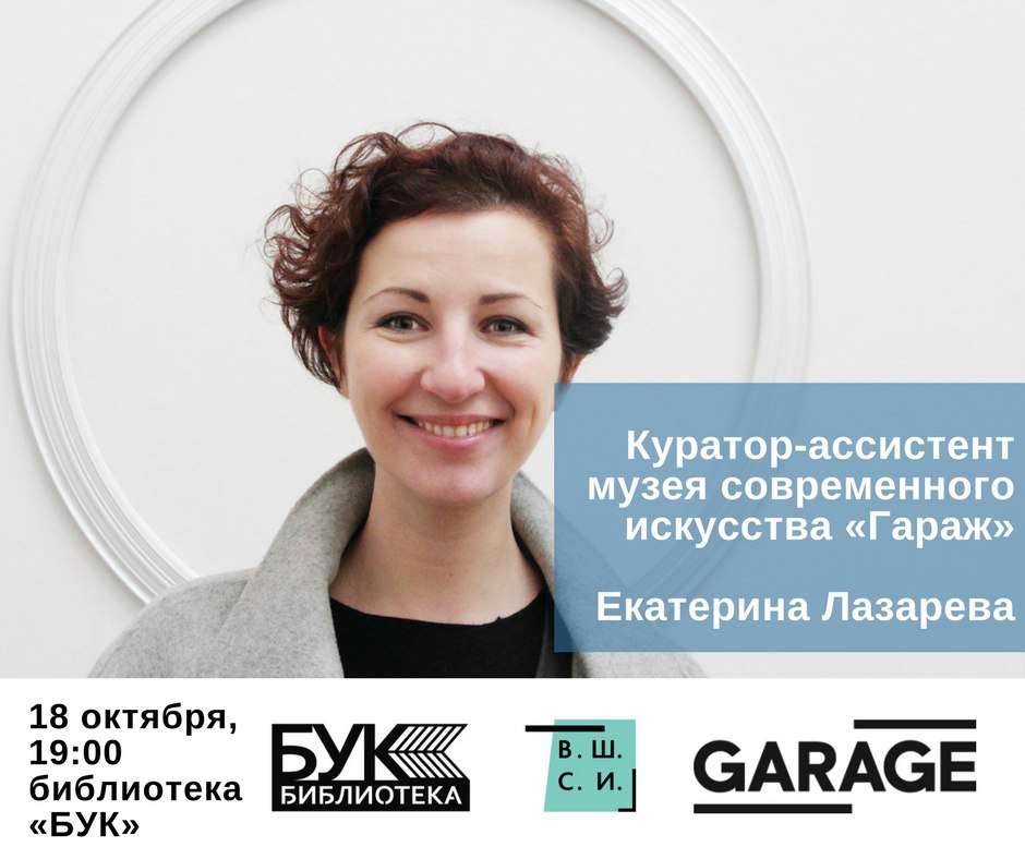18 октября в библиотеке «БУК» в 19:00 (в среду) пройдет вторая онлайн встреча ВШСИ с представителем Музея современного искусства «Гараж» - куратором-ассистентом Музея «Гараж» Екатериной Лазаревой.