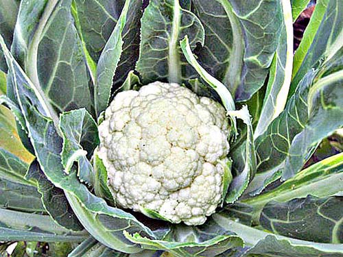 Благодаря оттоку питательных веществ из листьев, головки цветной капусты увеличиваются до 15-16 см в диаметре.